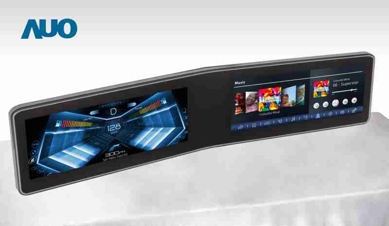 传奇国际 V 型曲面驾驶舱显示器,,,,采全贴合拼接仪表板及中控台显示屏