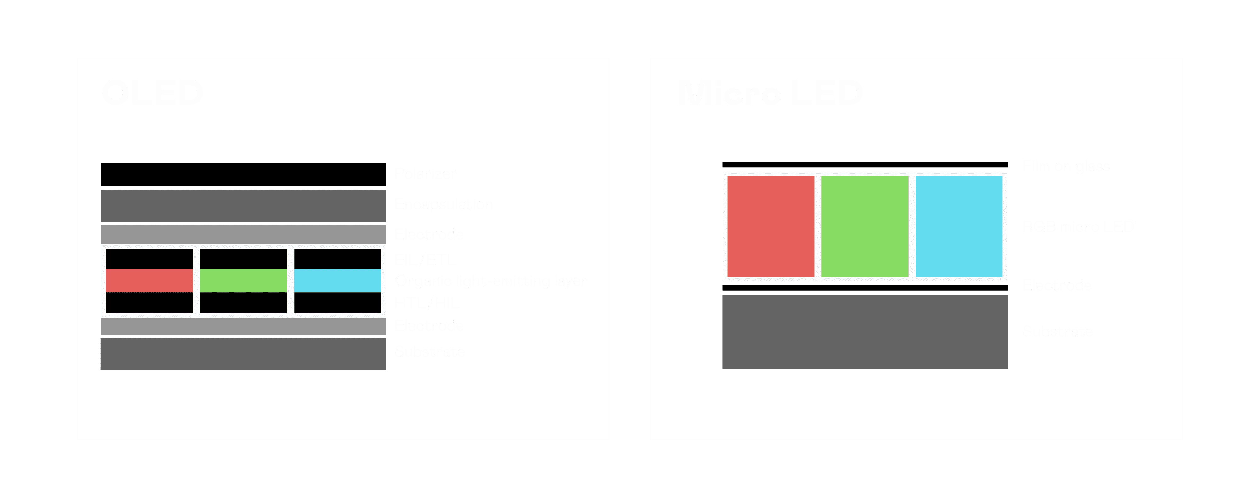 以 LED 做为显示画素,,,可让 LED 的发光效率发挥到极致,,,从而让显示器具备优异的亮度表现,,,不论是在户外或室内,,,均具备出众的显示效果。。。。同时,,与使用有机材料的 OLED 相比,,,LED 具备更稳定、、、、寿命更长的特性,,,,不仅不会有画面烙印问题,,,而且更不容易出现故障、、坏点。。。。