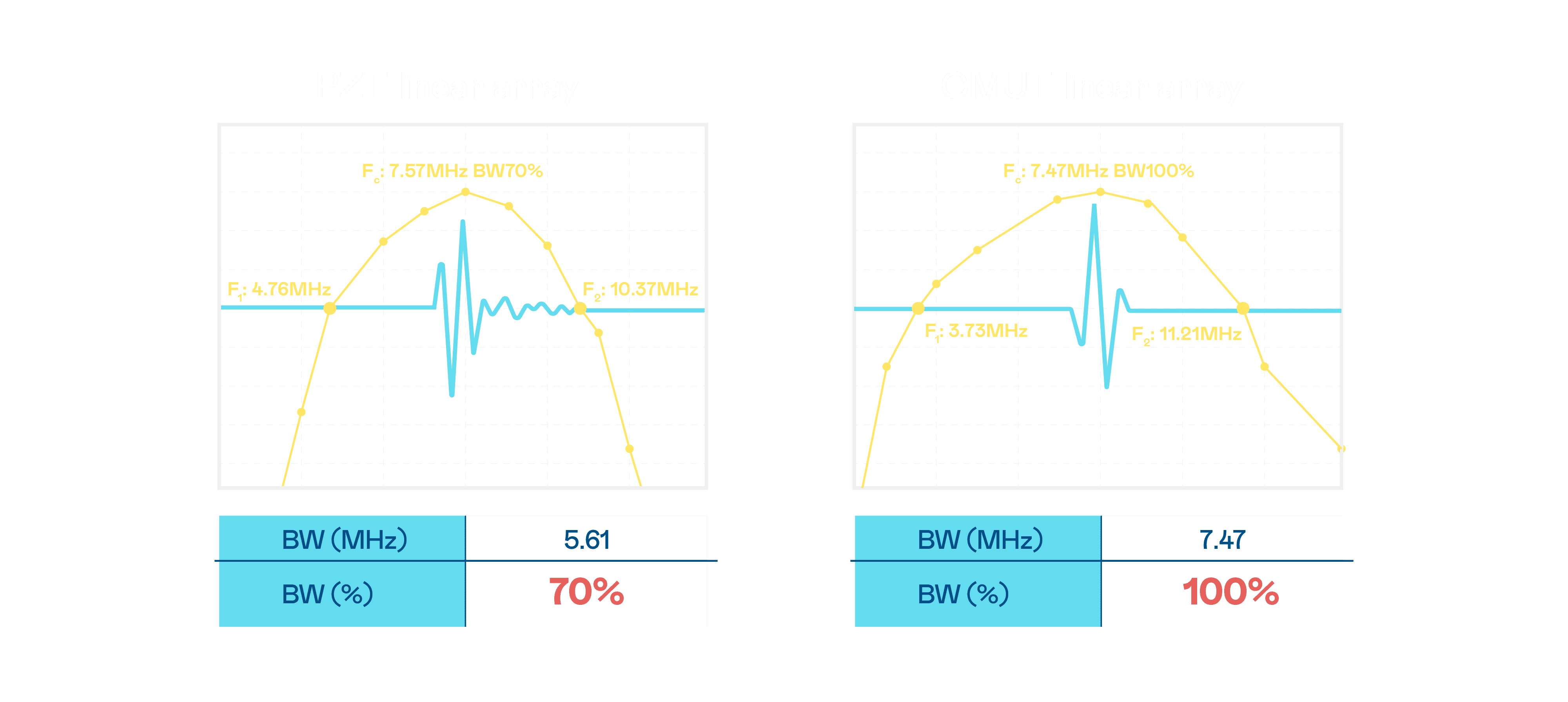 超音波影像的解析度高低,,首先取决于探头能发出的讯号频宽。。。传奇国际 CMUT 可提供高清晰的超音波讯号,,,,提供高频宽、、高灵敏度、、、影像纹理细节更高的超音波影像,,协助医护人员缩短影像判读时间及利用精准的医疗影像进行诊断。。
